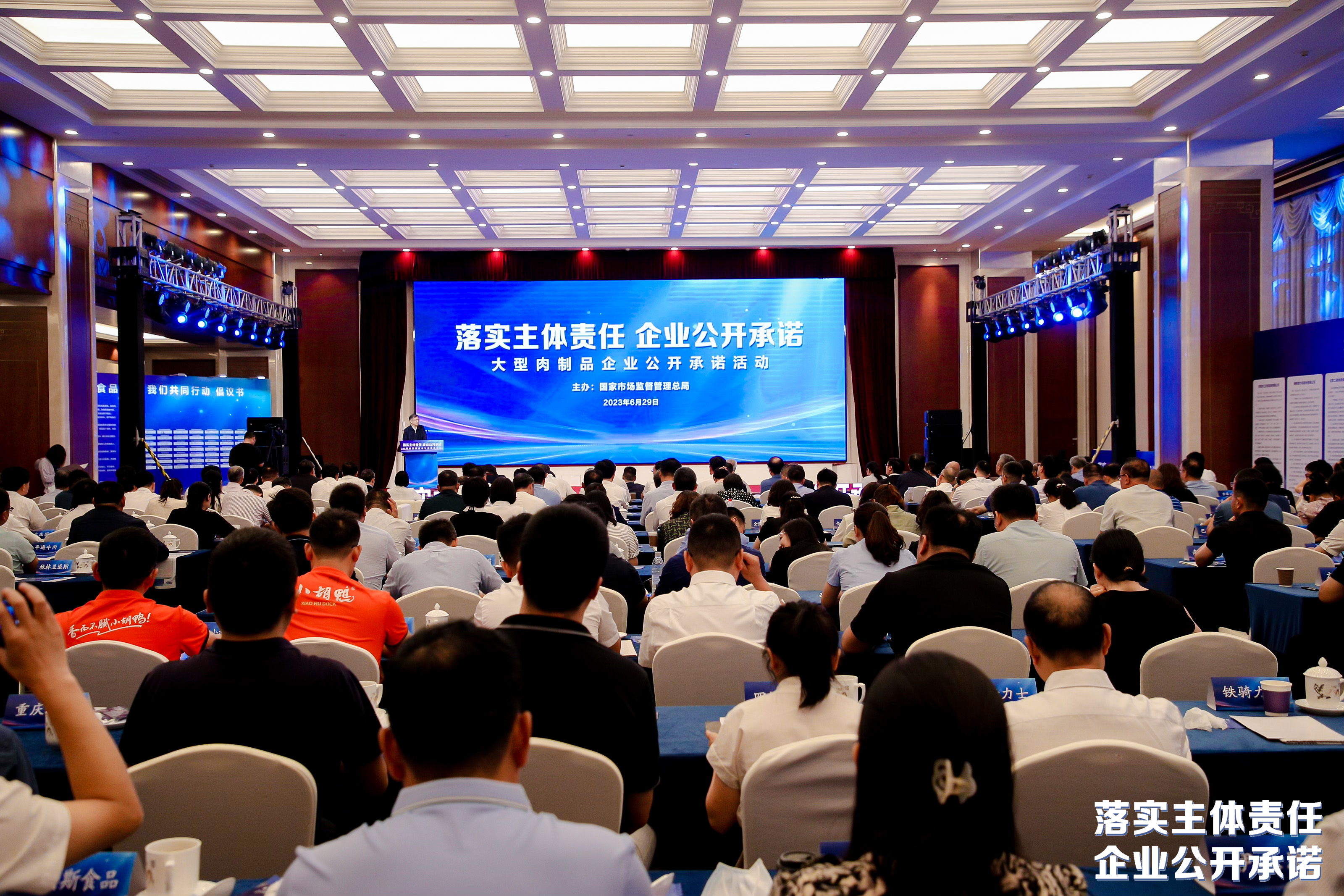 6月29日,國家市場監(jiān)管總局主辦的大型肉制品生產(chǎn)企業(yè)“落實主體責(zé)任 企業(yè)公開承諾”活動在京舉辦。國家市場監(jiān)管總局黨組成員、副局長蒲淳出席活動并講話。大莊園集團(tuán)作為行業(yè)代表,與其它大型肉制品企業(yè)一起向社會公開作出承諾。
